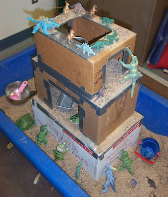 Or make sculptures by piling and balancing them on top of one another. This child told me this was his house and wanted to make sure I saw it.