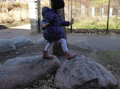 Here was another nice example of enough water for meaningful and sustained play. The children set about the task of filling a five-gallon bucket next to the table. In the video, the water was already inches from the top when a child poured a little more water---carefully and accurately---from a stainless steel bowl into the bucket. As she finished her pour, the child with the spoon declared that it was enough water. The child with the spoon then started to stir the water in the bucket with her spoon. She was soon joined by a child with a little metal measuring cup. They seemed to want to know how vigorously they could stir without spilling.
