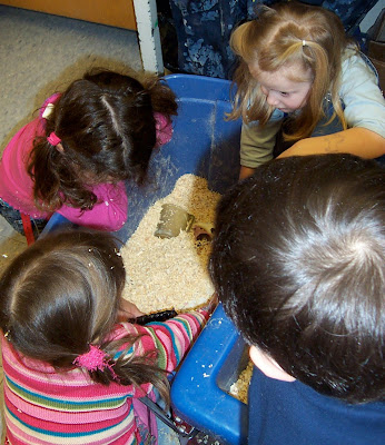 Clearly movement and manipulation with the hands happen in all areas of an early childhood classroom.   Besides movement and using the hands, Dr. Brown also mentioned in his talk the need for play experiences that include all the senses.  For me, this sums up play in and around the sensory table: movement, hand exploration/manipulation, sight, sound, smell---and all in 3-D.
