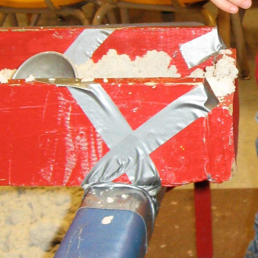 There is a footnote to this episode.  Look at the video one more time and pay special attention to the very end.  As the two boys execute "the pour" together, the lip of the top pail slips and causes all the sand to go on the floor---not in the pail.  This brings up an important point when there is a sensory table in the classroom. There is a corollary to axiom 1 on the top right of the blog: In the act of transporting whatever is in the table out of the table, the children will spill.  It is an integral part of the process, so we deal with it and, at times, are even able to laugh.