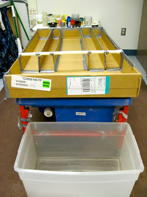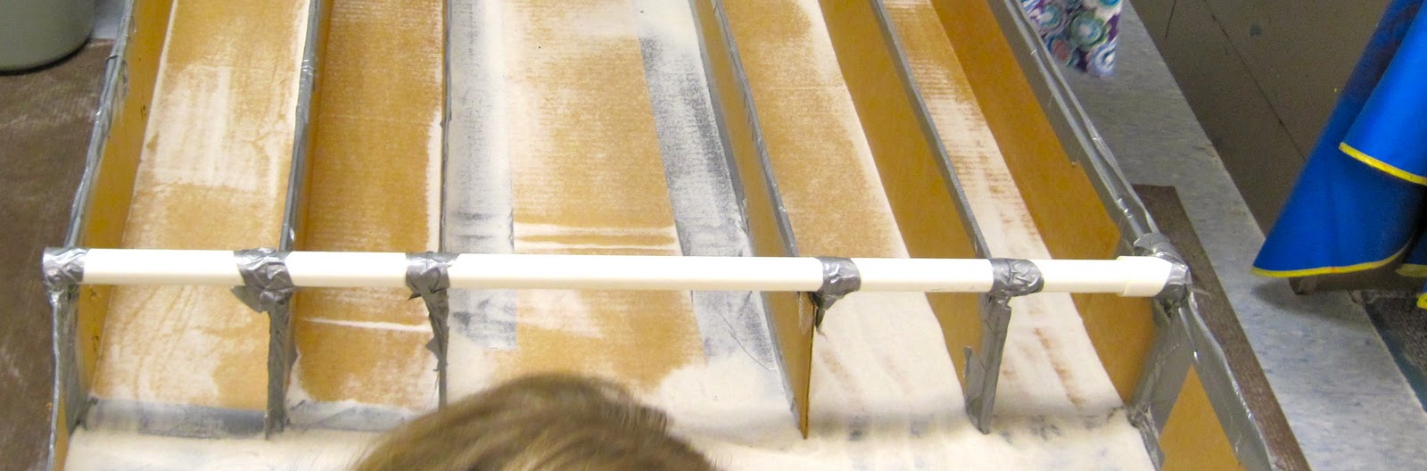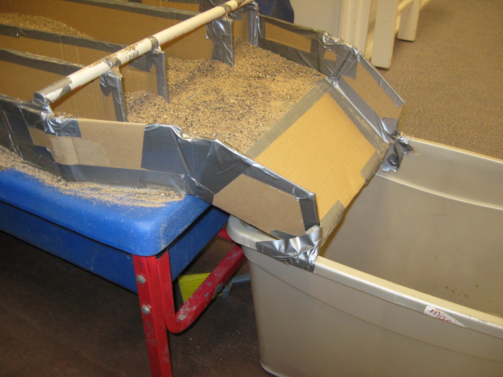 I wanted to make something that would take advantage of the flatness of the box. I decided to make something that would fit on top of the sand table. When I say on top, I mean on top of the cover of the sand table. That way the top of the table could give a flat-structured apparatus more strength by serving as the support for the apparatus.