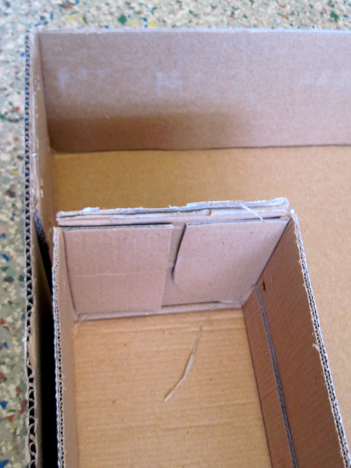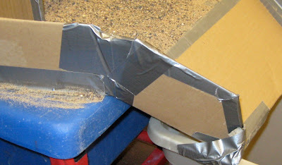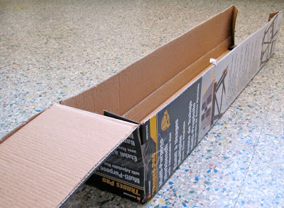 When I do that, I add a triangular cardboard piece on each side to get the slant for the ramp. It is hard to see in this picture because it is completely covered with duct tape, but you can kind of see it in the middle, right?