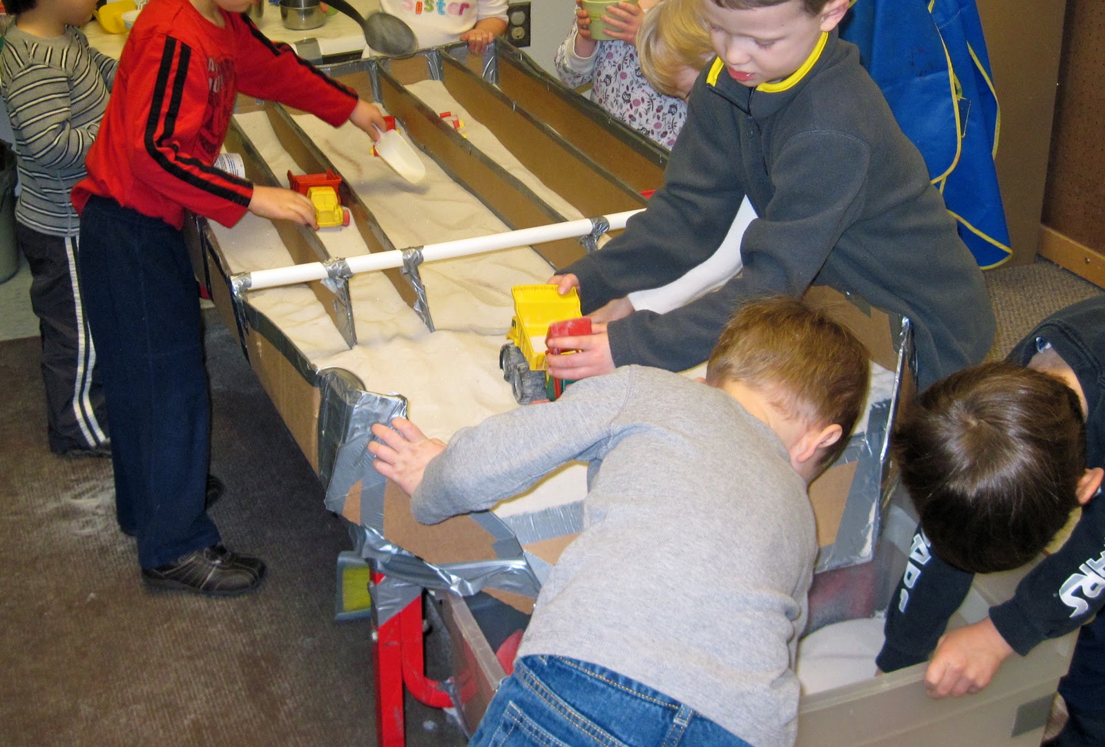 Without the pipe, the channels tend to lean. I have done that before and it does change the space in which the children operate. They can, however, learn that lots of sand can constrict the channels.
