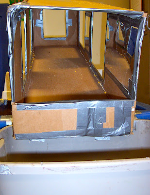 Many times the cardboard apparatus I build for the sensory table is determined by the size and shape of the box. For the longest time, I had been saving a large, rectangular box trying to figure out what to do with it. I settled on a design that put it on an incline over the table.