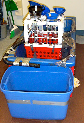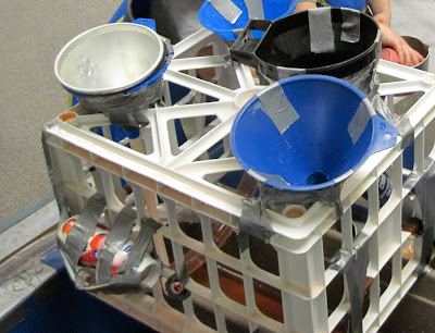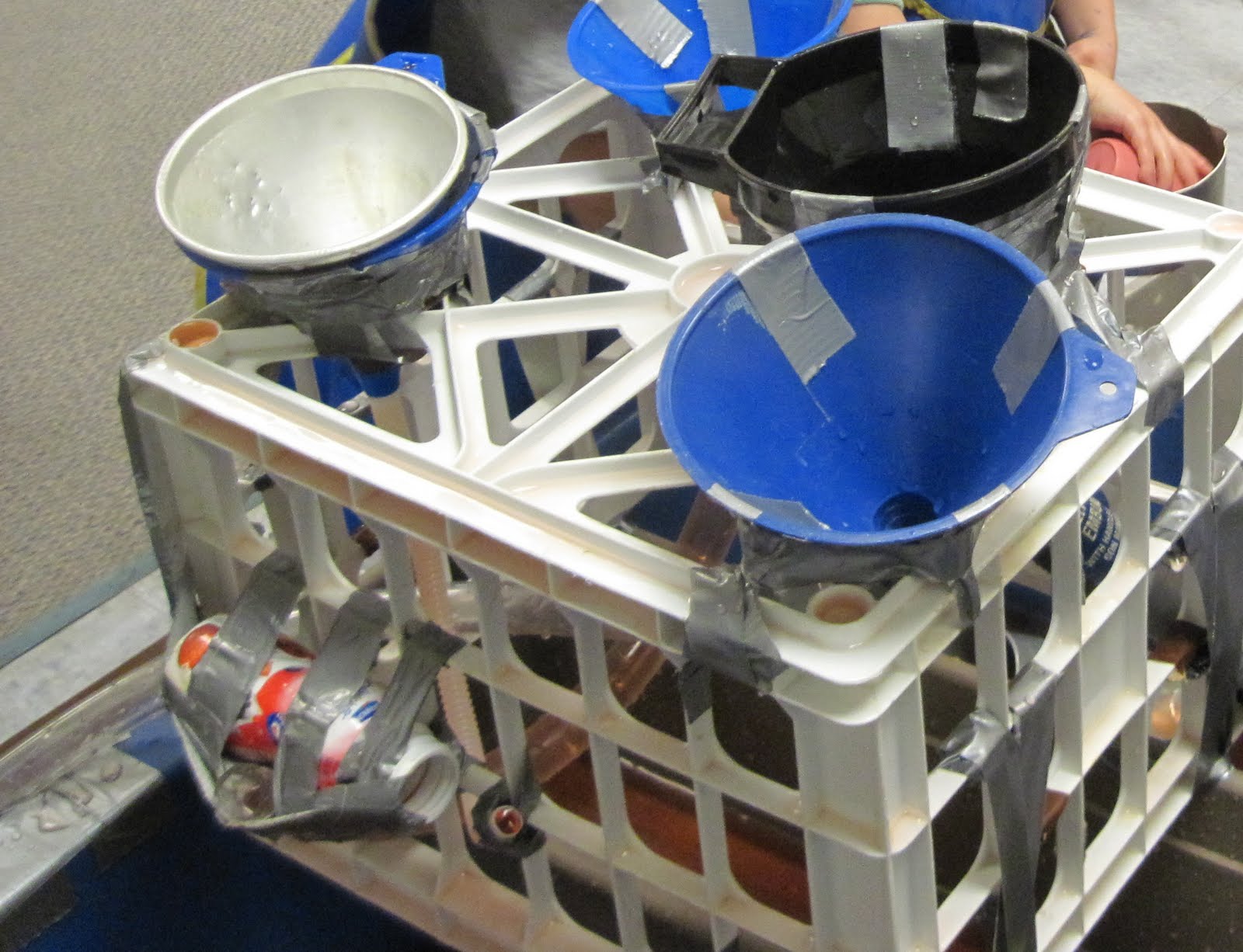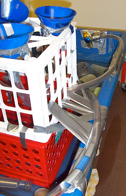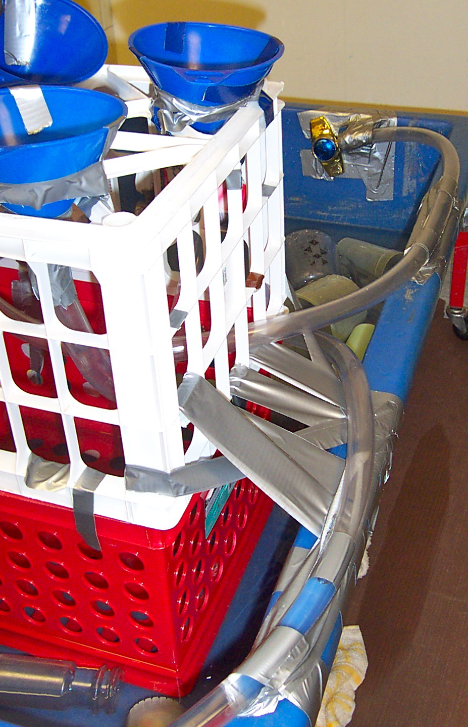 Funnels, tubes and a whole lot of duct tape holding it all together. (If you look closely, I even incorporated a larger black tube, one that is not clear.)