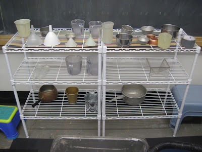 This year I have changed the setup that holds the implements and utensils that the children use in the sensory table.  That setup is pictured below.
