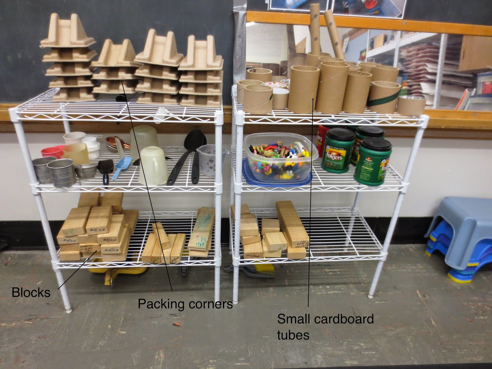 As you can see, the first set up did not include a lot of blocks. In addition, there are other loose parts like the packing corners and cut up cardboard tubes.