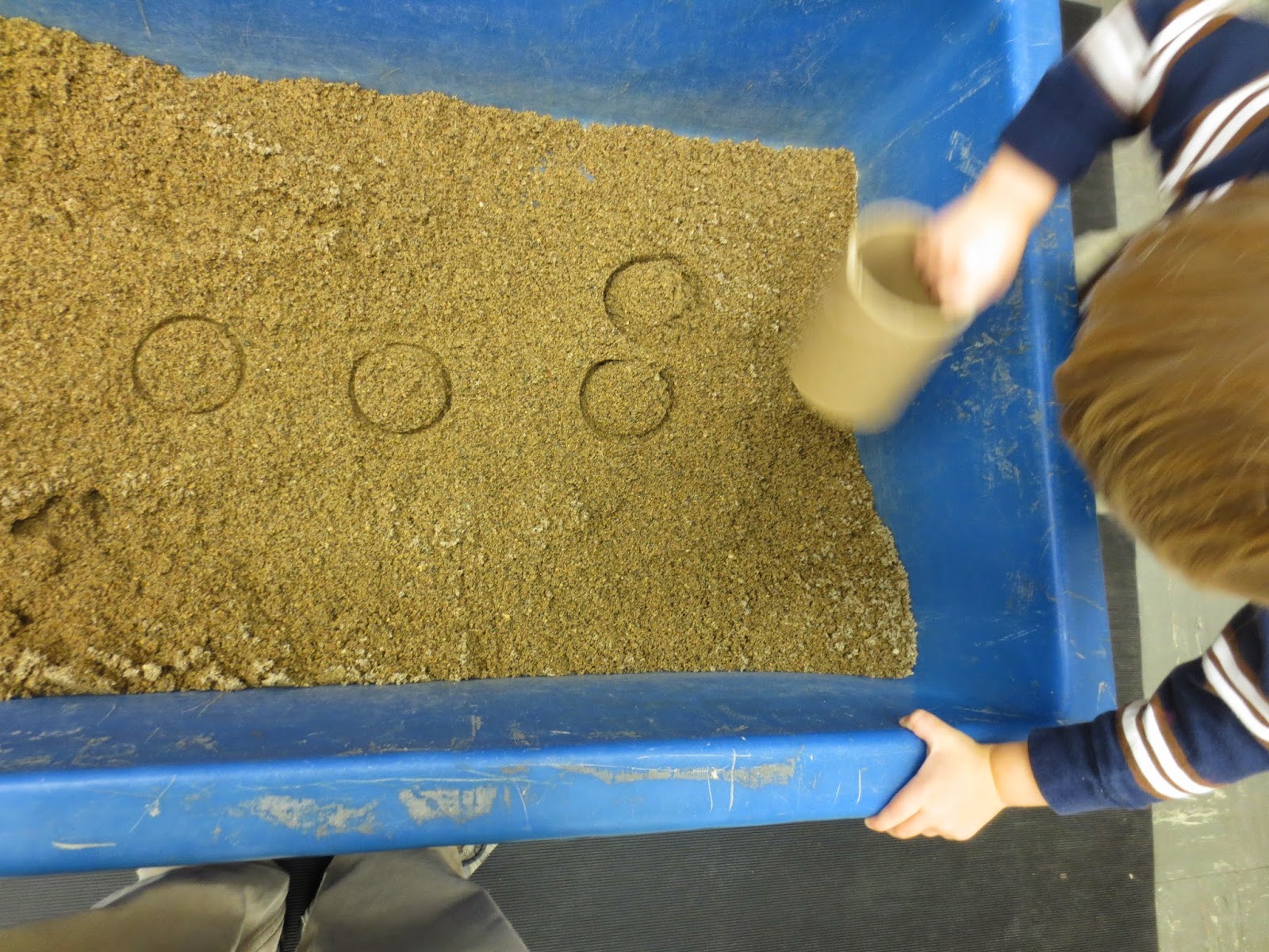 The biggest surprise with this setup was how much the children used the cardboard rings. They were used for making impressions in the sand.