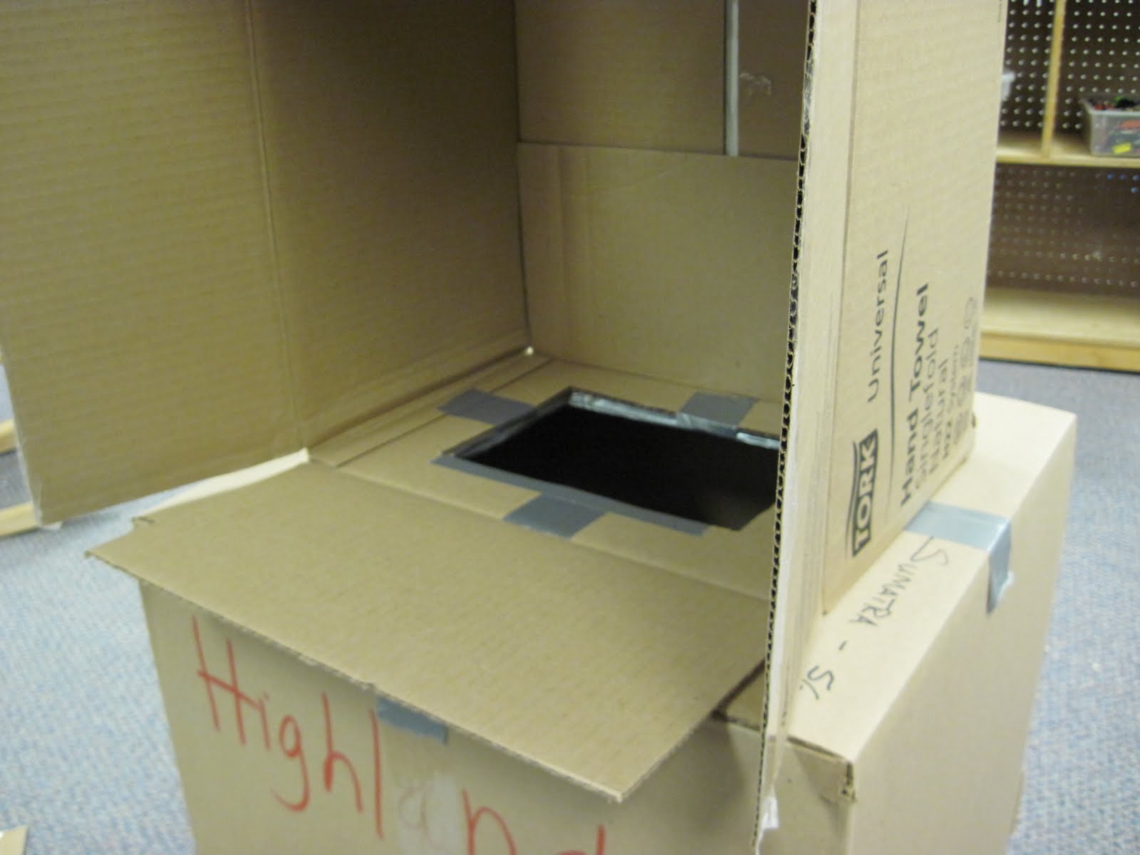 I also taped all the joints were the boxes meet to make an even more secure bond. My experience tells me the children will test the strength of any given apparatus.