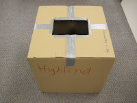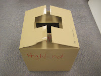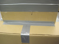 I taped the boxes together.  Notice that I kept the flaps open on the second box.  That made it much easier for me to reach inside to tape the holes together for a strong bond between the boxes.
