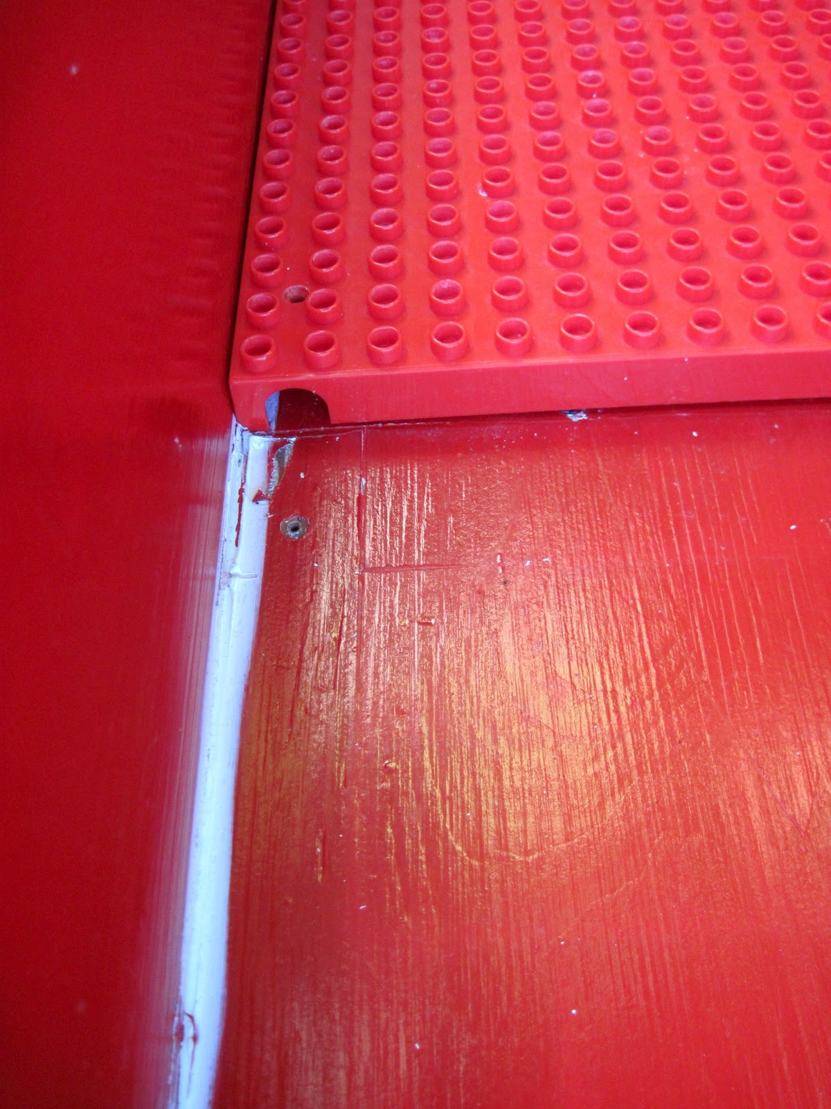I caulked the inside joints of the wood---not the Duplo boards---so water would not leak through them onto the floor.