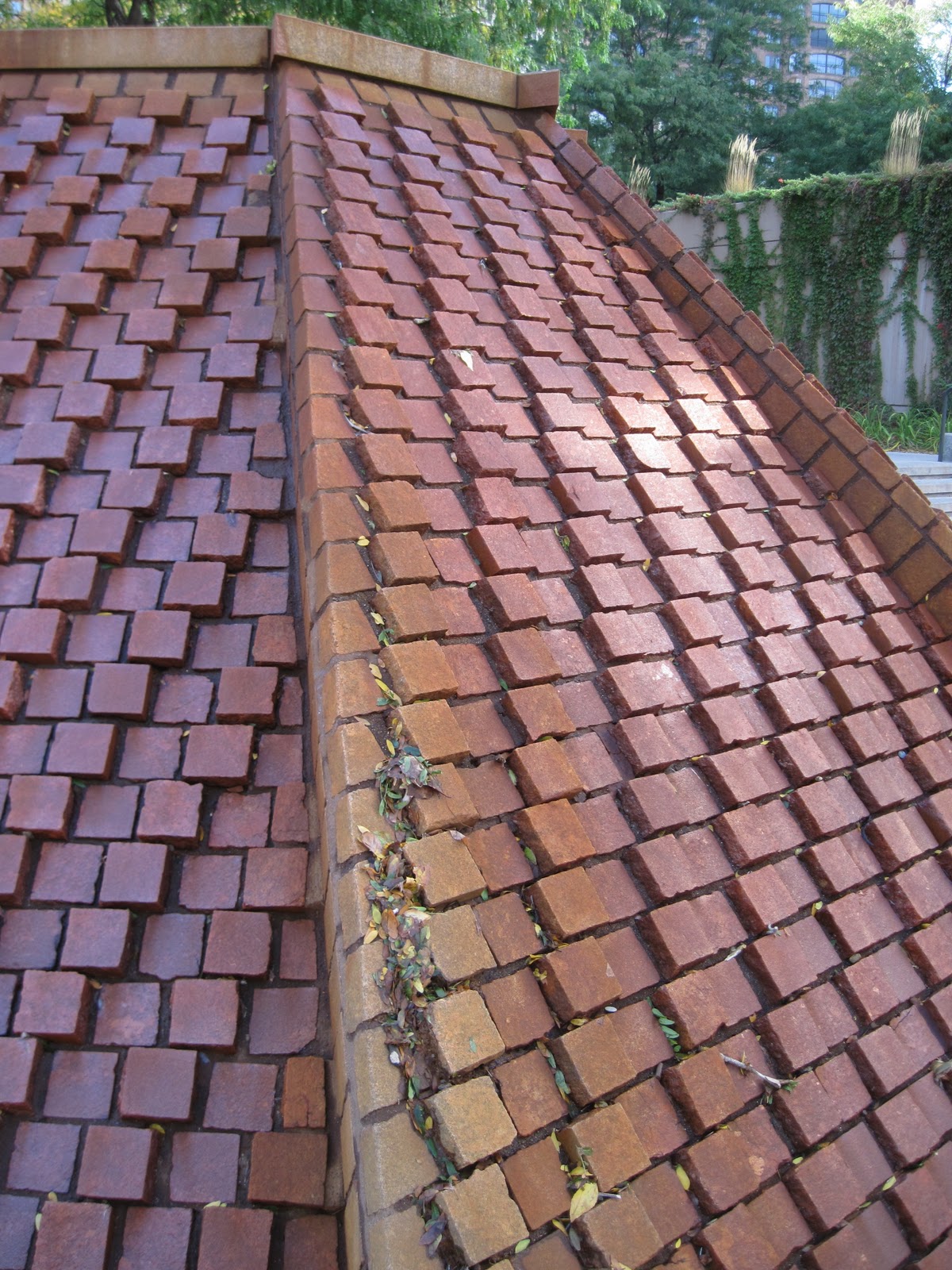 What was intriguing about this fountain was how the water flowed down. It bubbled out of the top and dropped down the sides. As you can see, the bricks are staggered and some stick out so when the water flows over them on the way down, it splashes and jumps as if rollicking over rocks. I wanted to create something similar for the children to experience. Here it is in action.