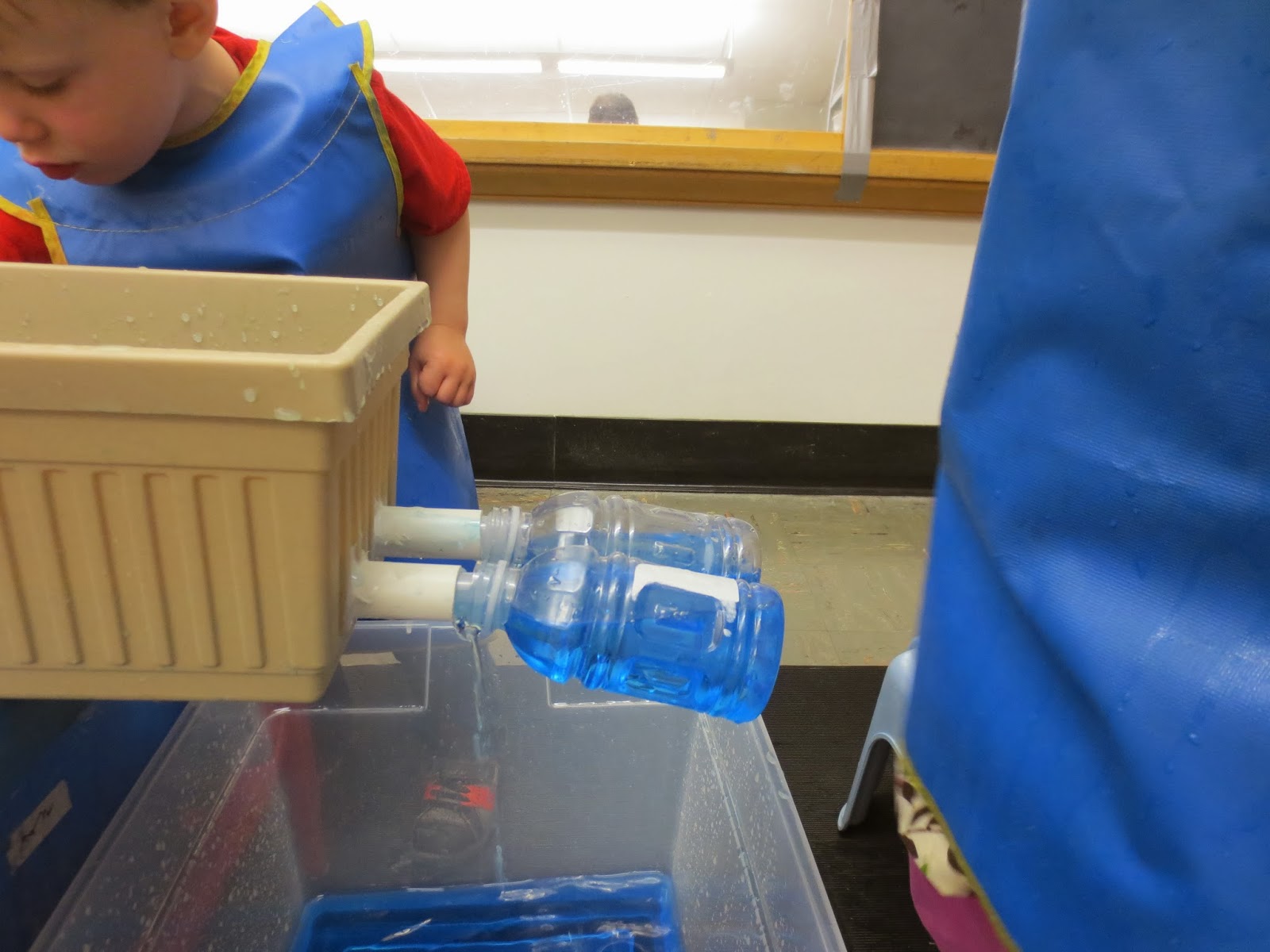 What is so great about this video is that the boy has to reach up as high as he can while standing on a stool all the time keeping his noodle scoop perpendicular to the tube until he can turn his wrist to pour the pellets into the top of the tube. Did you see his expression upon completing his self-appointed task? The smile is priceless.