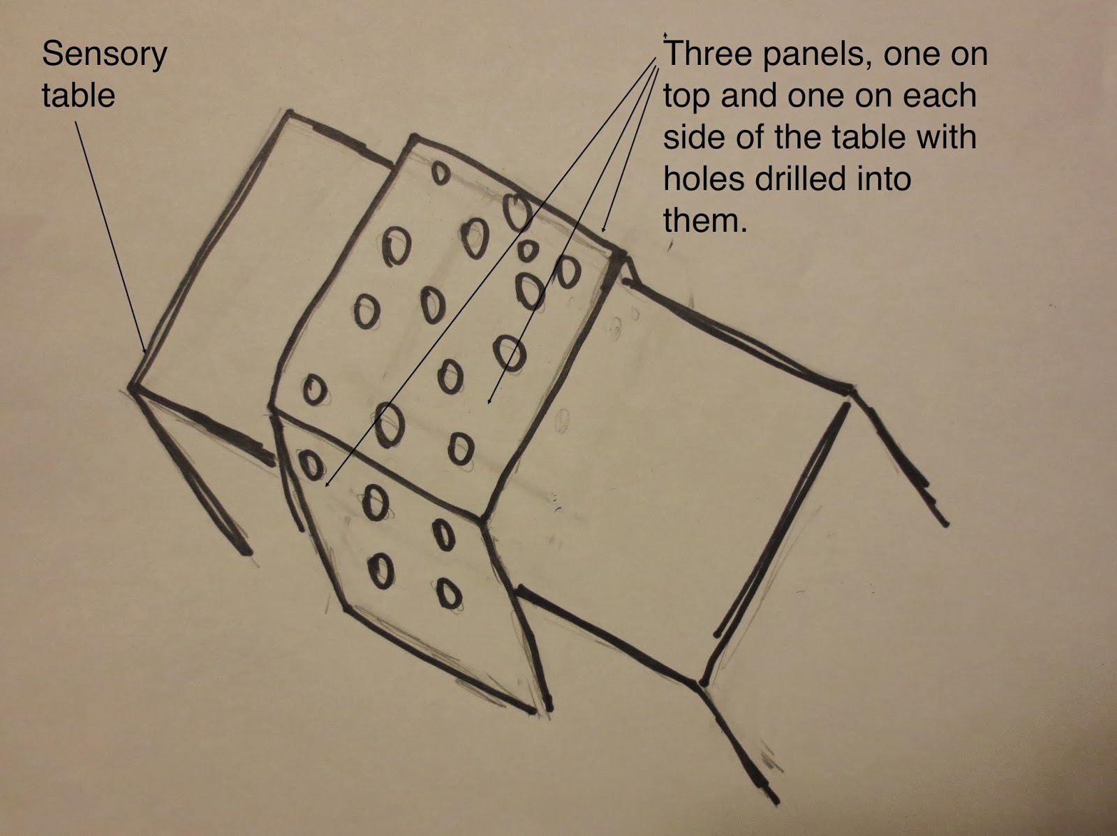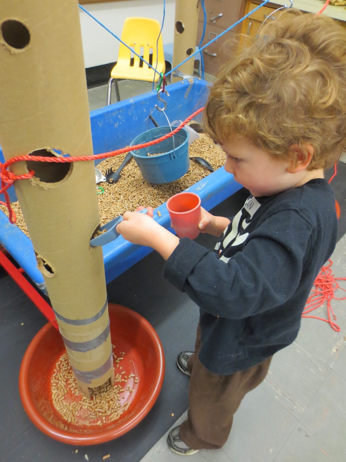Many children would pour pellets down the top of the tube. In the picture below, the child is both pouring pellets into the top of the tube and he has stuck his hand in one of the holes to feel the pellets fall on his hand as they travel down the tube.