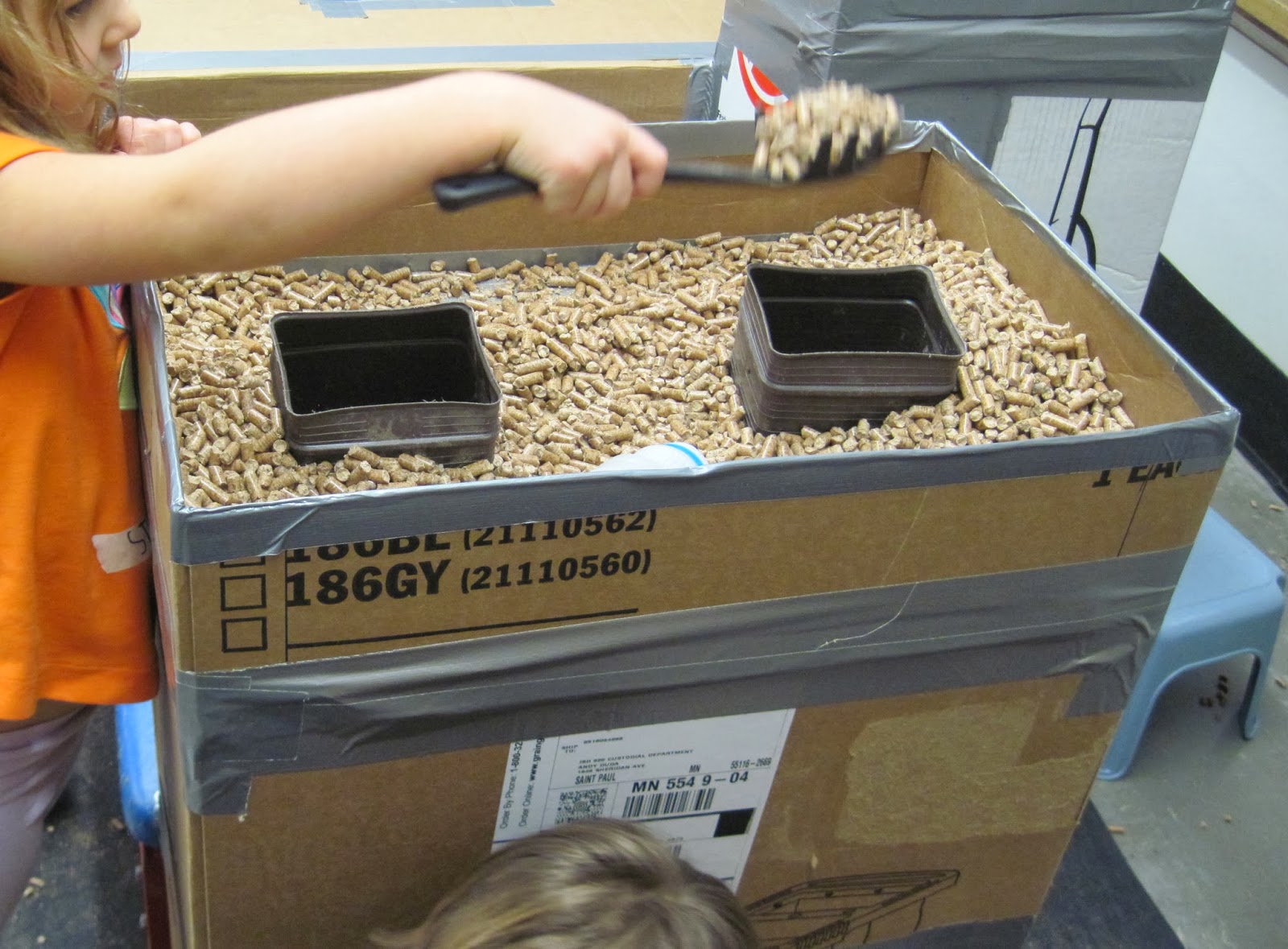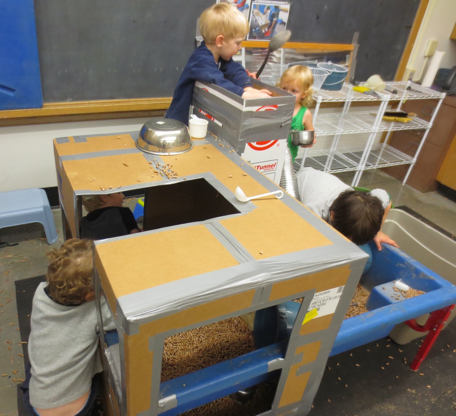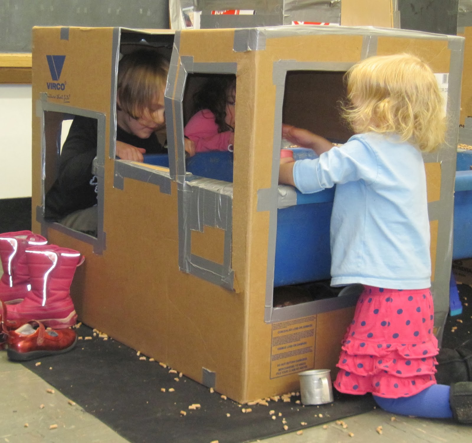 As the staff arrived on a cold and snowy morning, they brought more tools, more boxes and a variety of other materials to build with. Clearly they had already thought about possibilities for building.