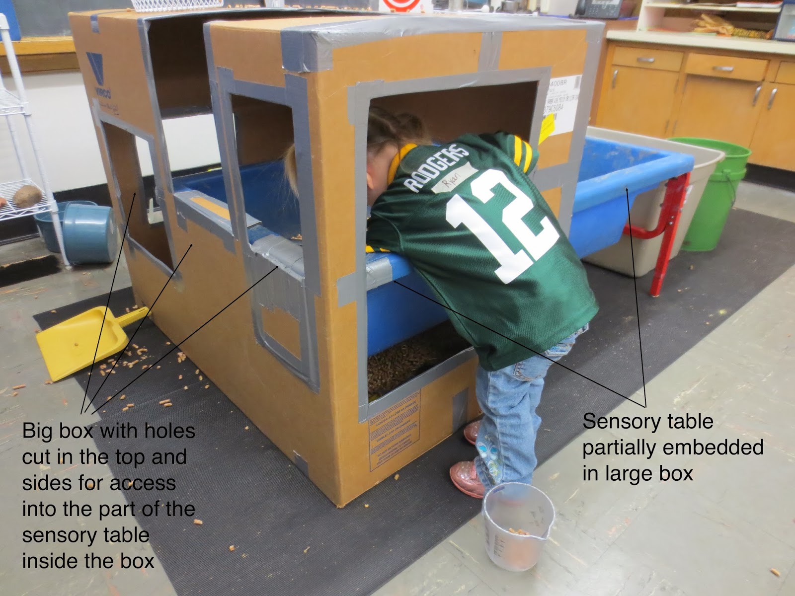 They also showed me around the center. The first thing I looked at when I went into each of the rooms was the set up for their sensory tables. That was good because then I could do a few last minute changes to my presentation to include ideas to think about when setting up a sensory area. A couple of years ago, I did a post on set up for the sensory table. It is called: Taking My Own Advice.