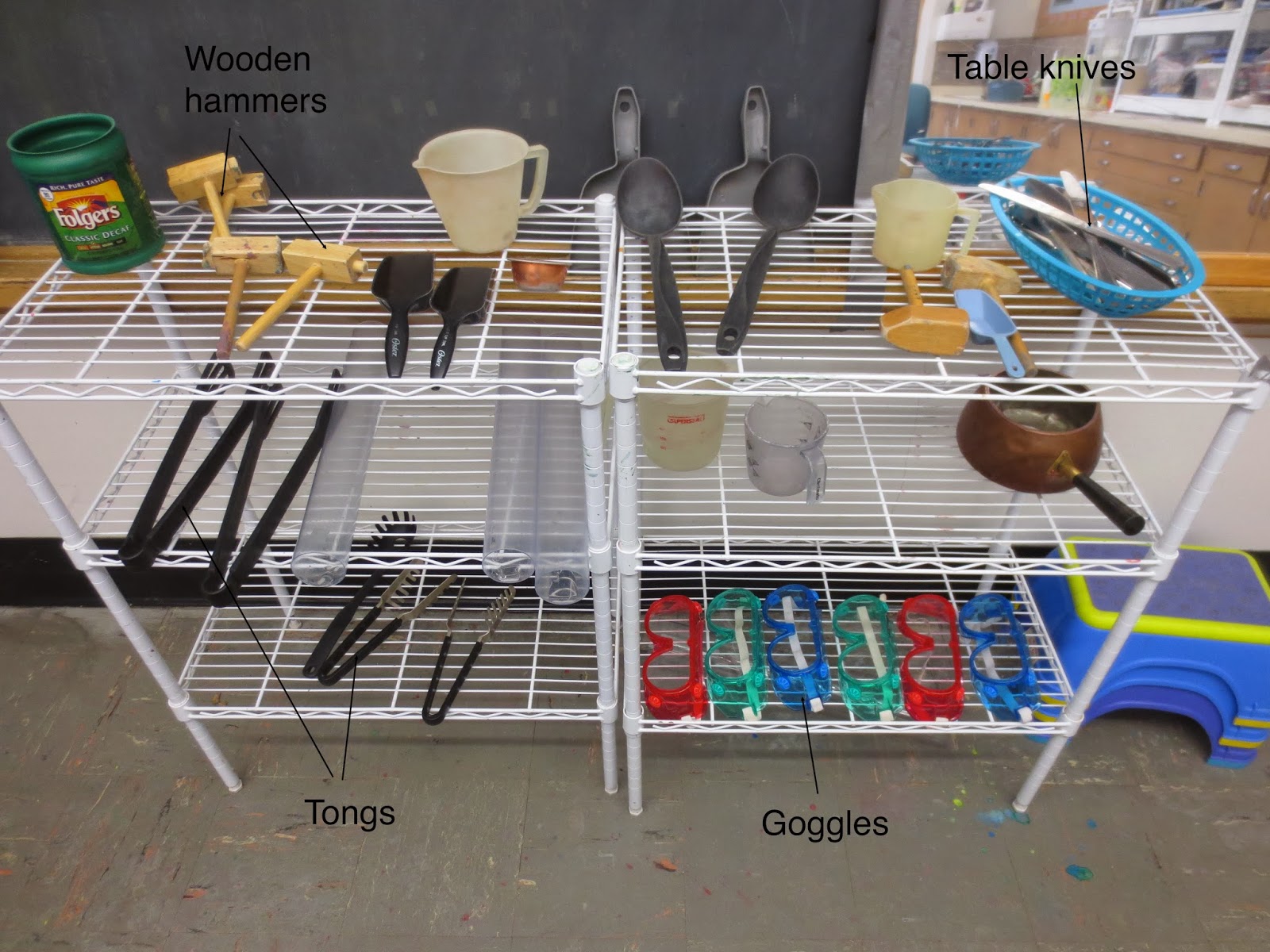 A mother reported this year that her child asked to make "ice toys" at home. He told her they needed goggles, knives, hammers and toys to freeze in ice. The mom asked how do we do that. The boy told her to just look at teacher Tom's blog to find the instructions. When there is transfer like this to home, I know the venture is worthwhile. So go ahead, make some "ice toys" and let the children pound and chop away.